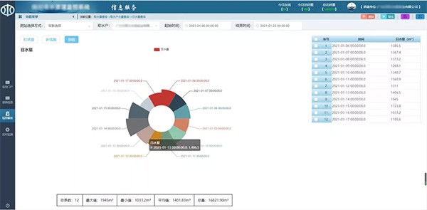 實現各計量點分、時排水量統計:對比排水量,做出日、周、月、年報表、曲線圖、柱狀圖等